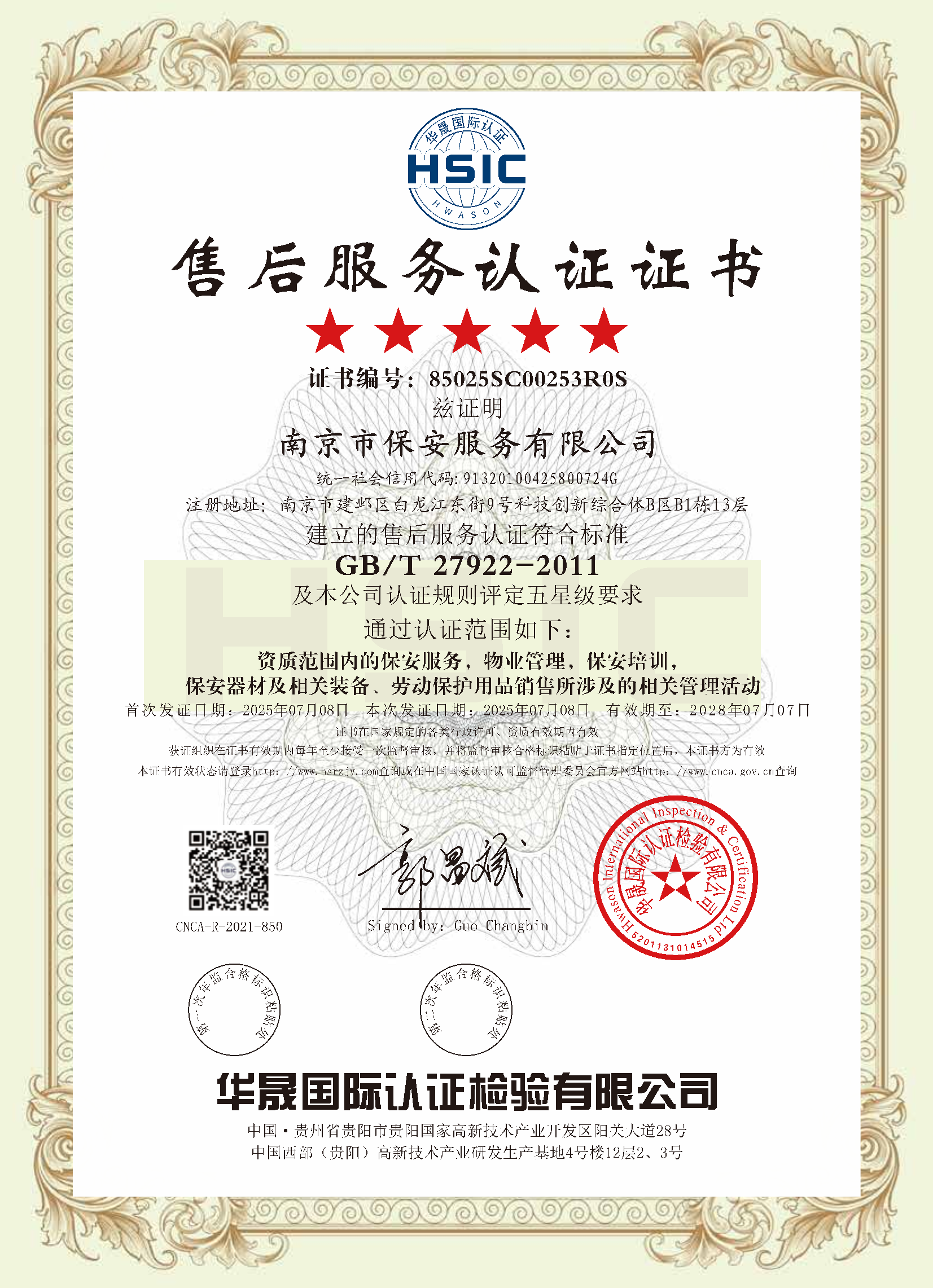 南京市保安服務有限公司(原南京市保安服務總公司)成立于1987年4月,是一個有著悠久安保經營歷史和安保經驗沉淀的大型國有保安企業(yè),現為中國保安協(xié)會常務理事單位,江蘇省保安協(xié)會常務理事單位,南京市保安協(xié)會副會長單位,江蘇省一級保安服務公司。